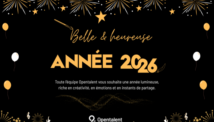 En ce début d’année 2026, toute l’équipe Opentalent vous adresse ses vœux les plus chaleureux ! Que cette nouvelle année soit pour vous une source d’inspiration, de découvertes culturelles et de moments partagés.
